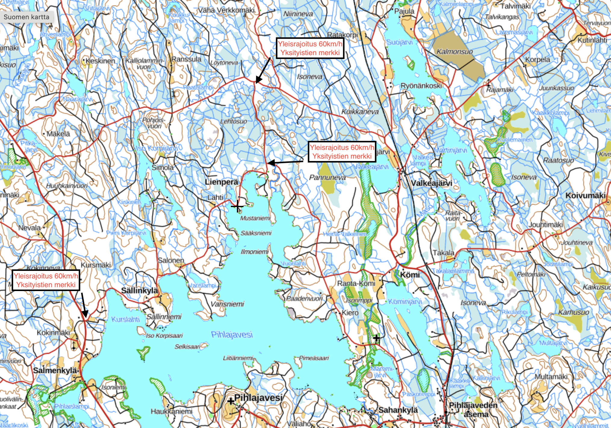 Liikennemerkkien asettaminen Sälli-Lienperä yksityistielle(Keuruu)